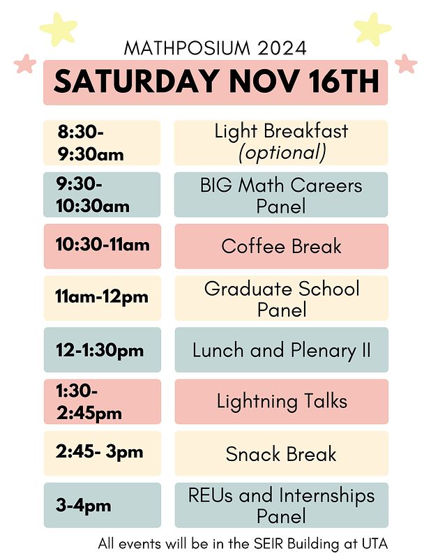 Mathposium 2024 will be held at UT Arlington on November 15th - 16th!